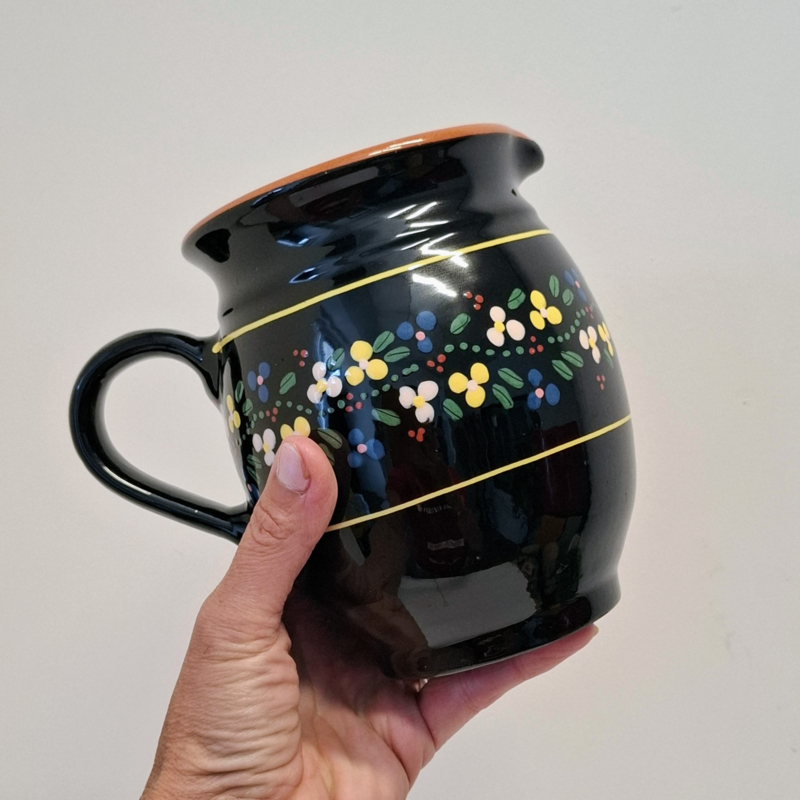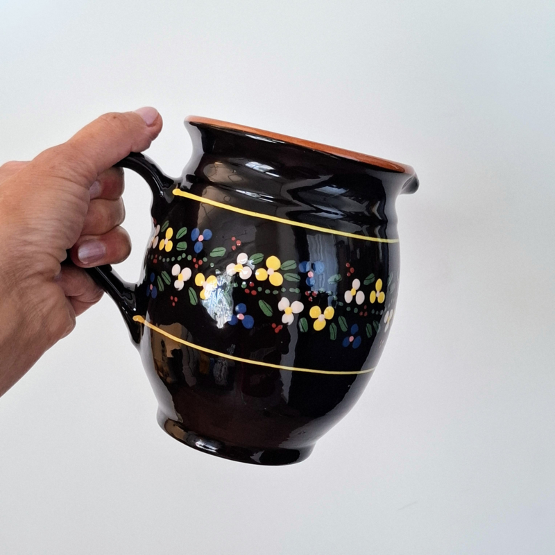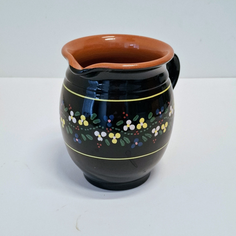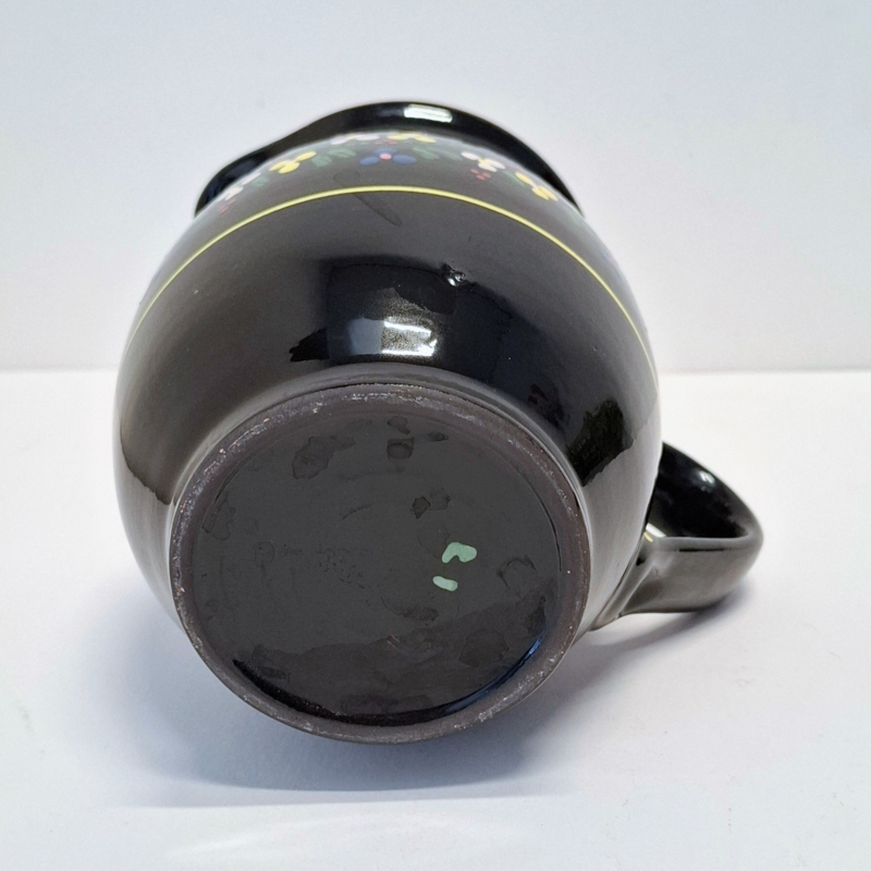 Aardewerk Schenkkan Zwart beschilderd met Bloemetjes