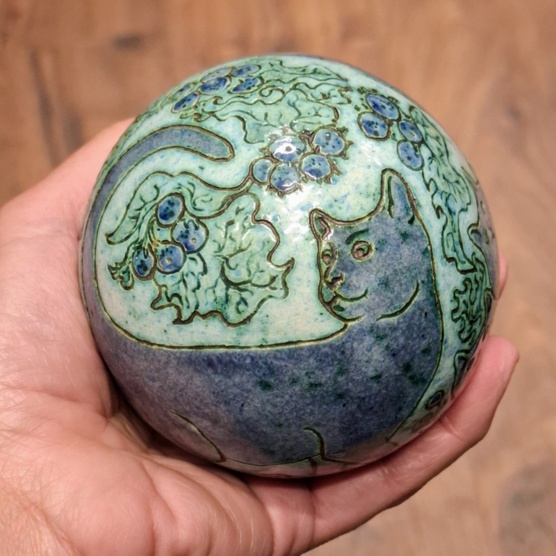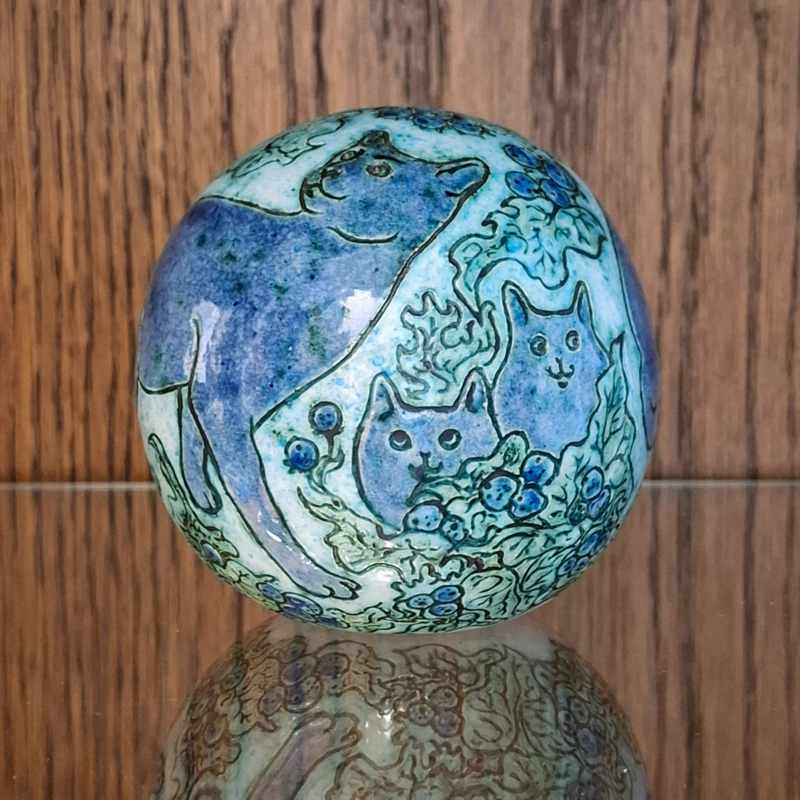 Keramische Bol - Keramiek / Poes / Kat - Tuinbol - Kunst / Decoratie