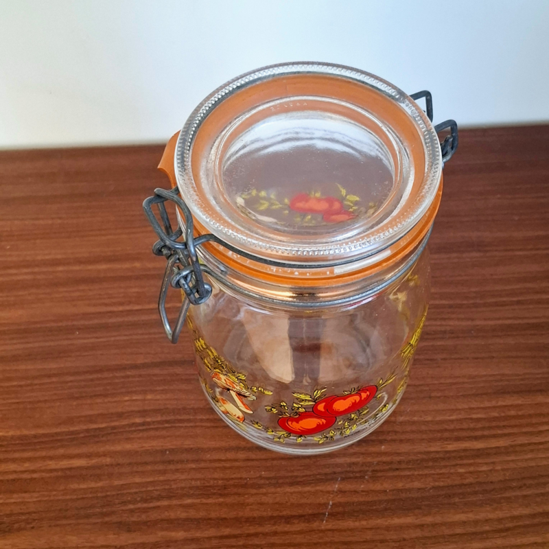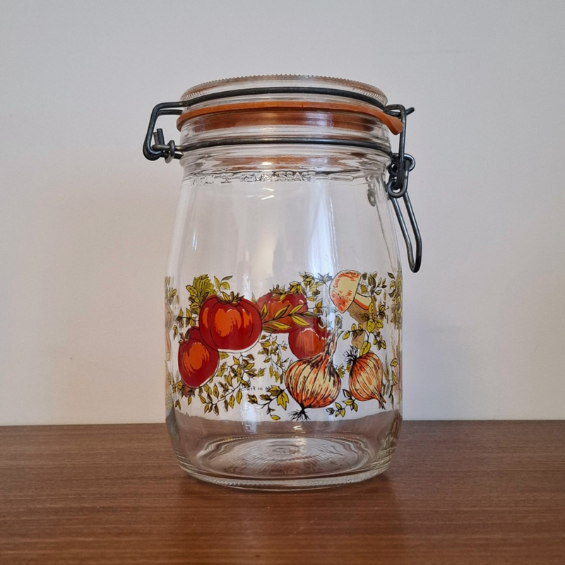 Glazen Voorraadpot met Groente- en Paddestoelenprint - Vintage