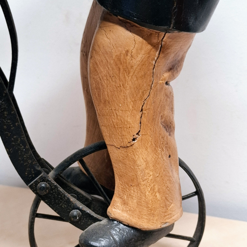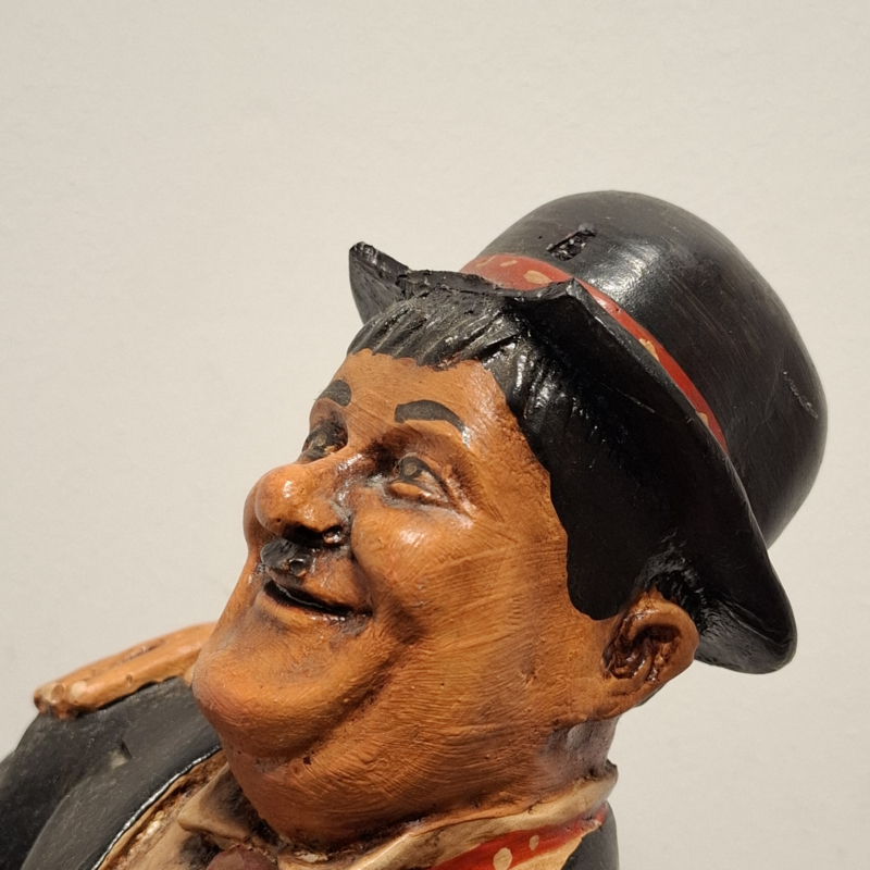 Stuk van de hoed ontbreekt en een been is gebroken en weer gelijmd, zie foto's.