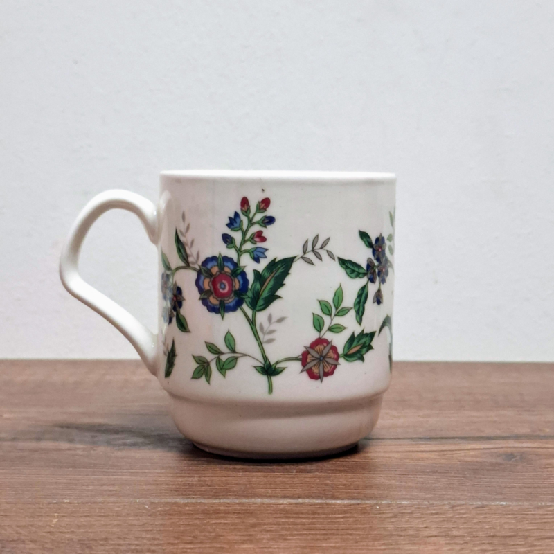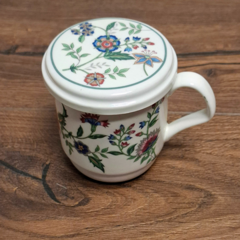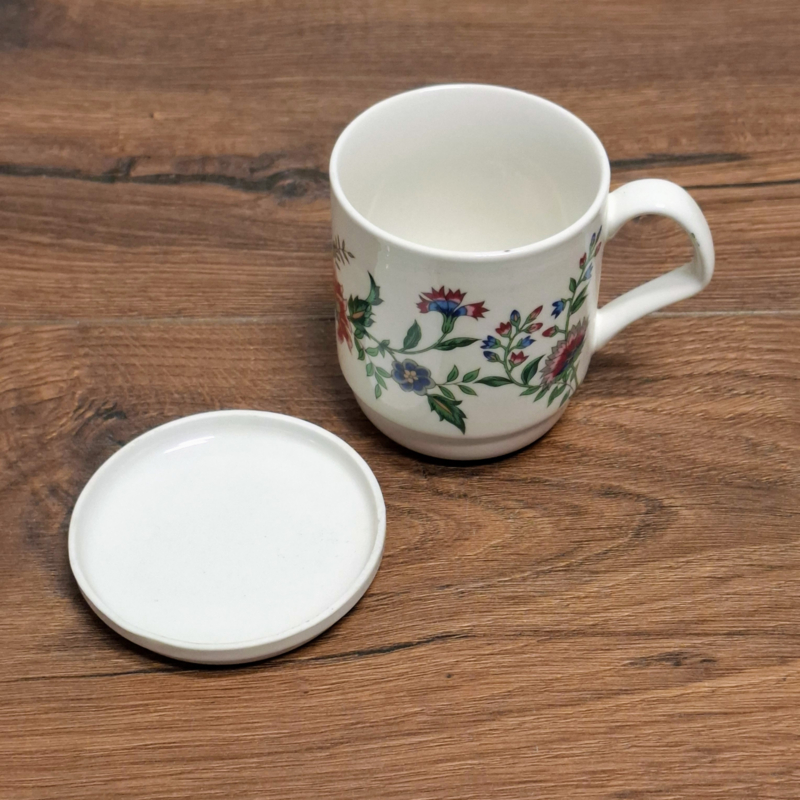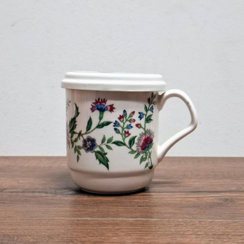 Gebloemde Mok / Beker met Deksel / Onderzetter