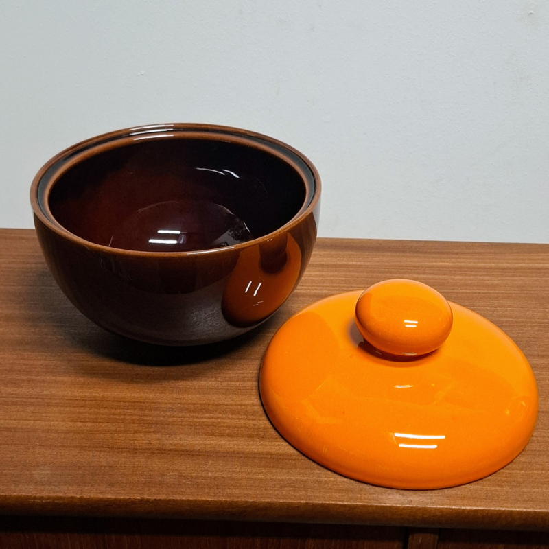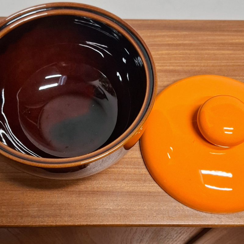 Kom met Deksel – Schaal Keramiek Bruin / Oranje Retro