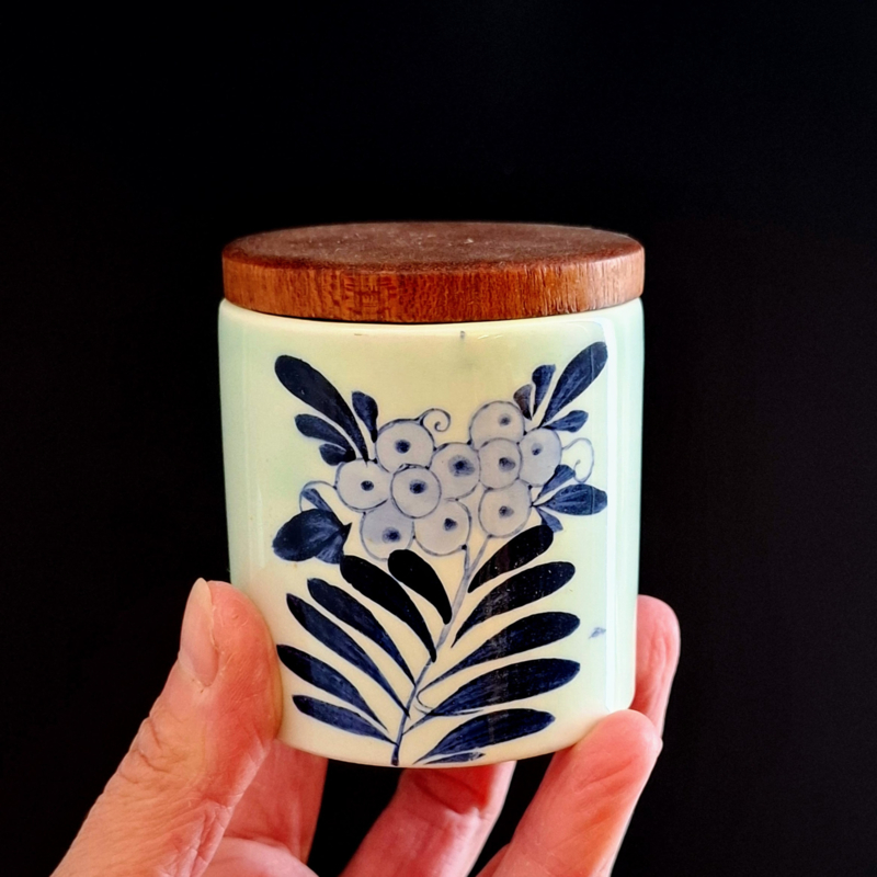3 Keramiek Potjes met houten deksel ( niet vacuüm sluitend)
