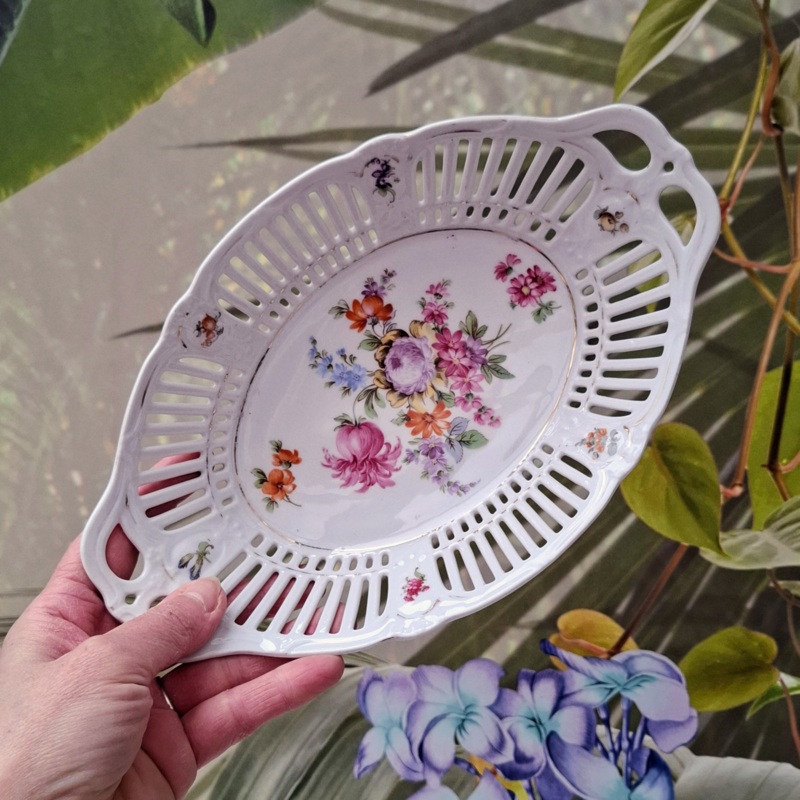 Vintage opengewerkt Schaal / Serveren - Bloemen