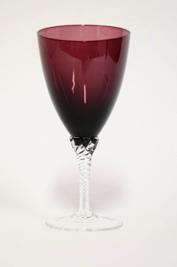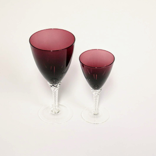 Vintage Purple Amethyst Twist Stem Wine Glasses, Set of 2, Bohemian Art Glass