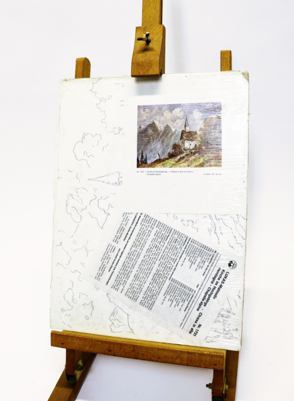 Schildersezel klein met 2 schilderijtjes om zelf te schilderen