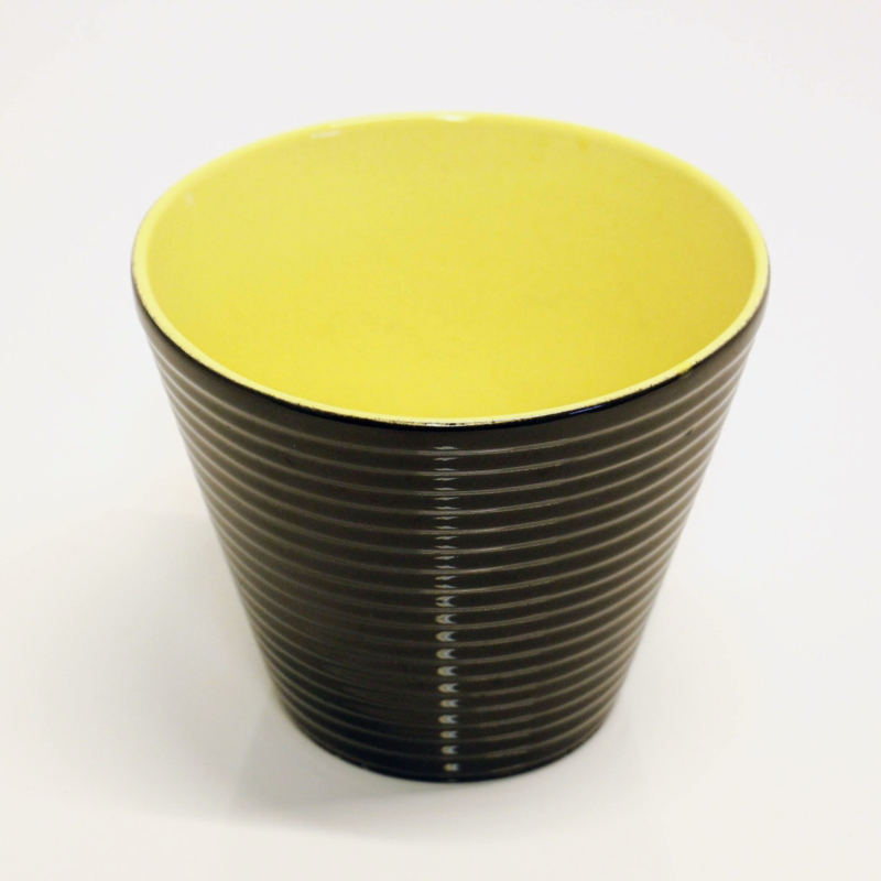 Bloempot - Binnen - Zwart / Geel - Ribbel