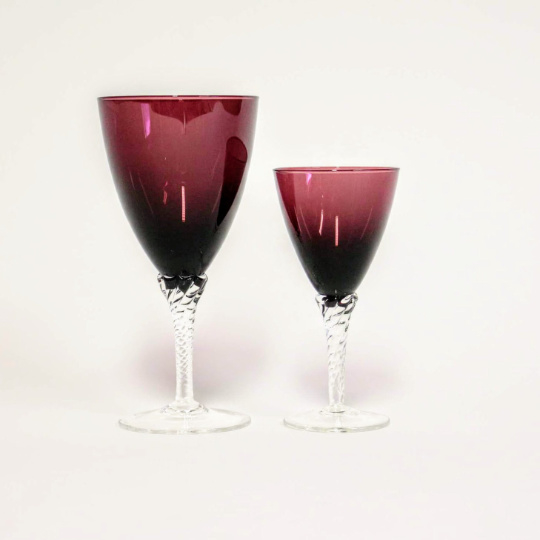 2 prachtige wijnglazen Vintage Purple Amethyst Twist Stem Wine Glasses, Set of 2, Bohemian Art Glass Hoogte 13,5 cm x diameter 6,5 cm Hoogte 17 cm x diameter 8 cmPuntgaaf