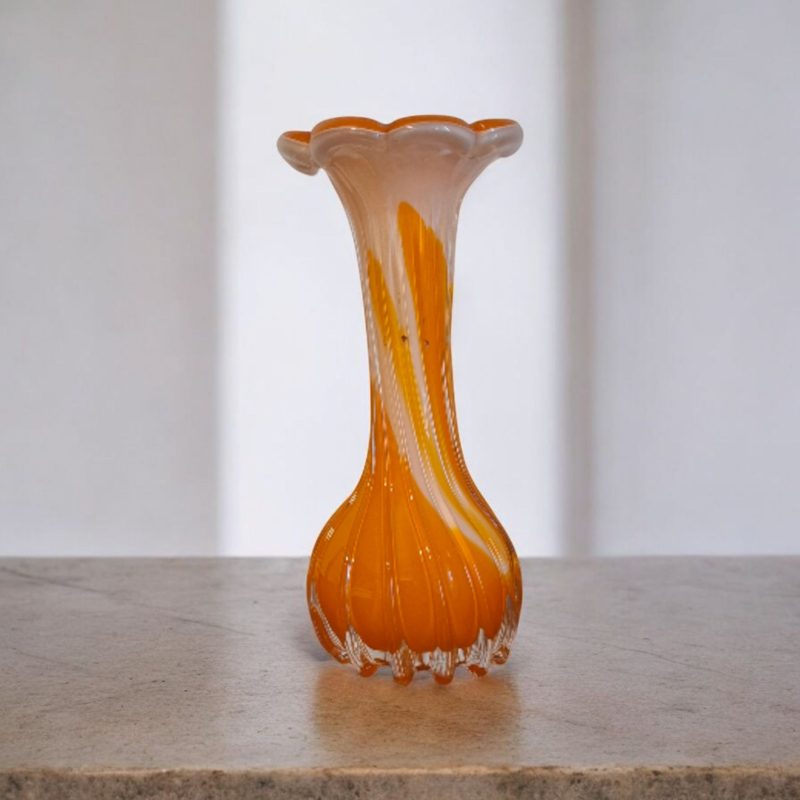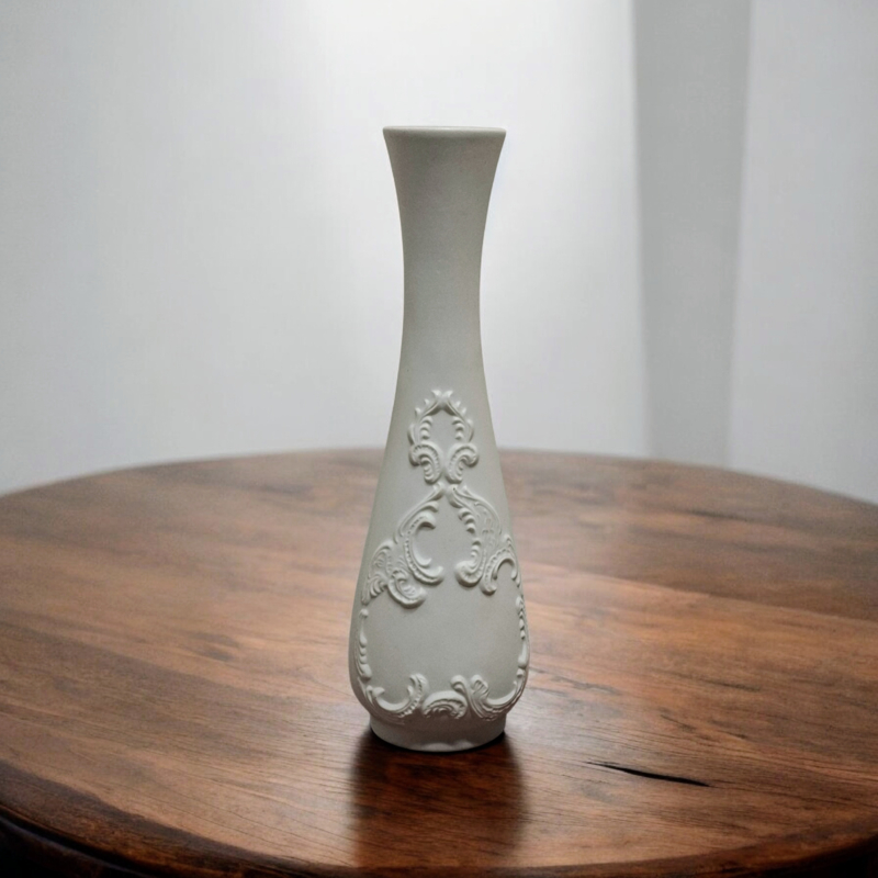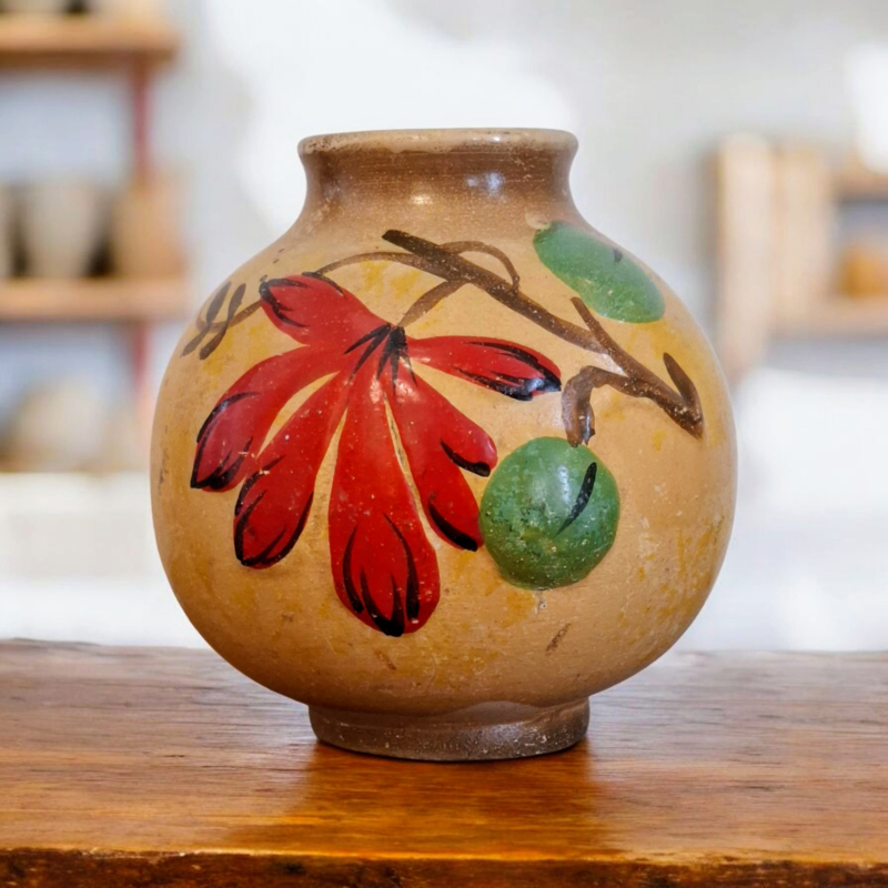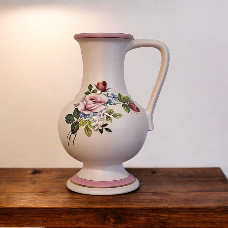 Brocante Handbeschilderde Vaas en KanVaas Diameter 10,5 cm x H 25,5 cm